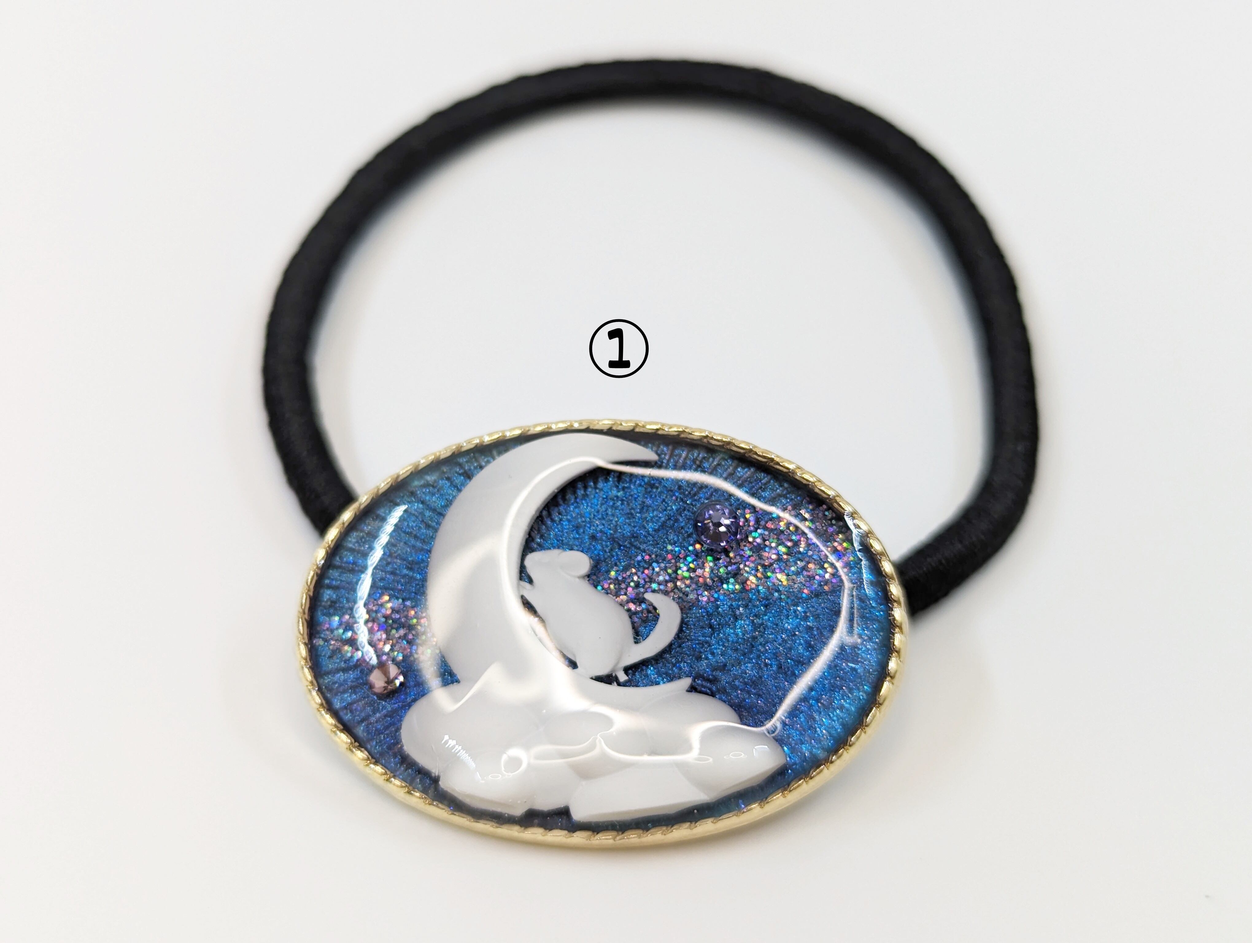 樹脂で作った月と雲とチンチラは立体感を出したデザイン。月の上で楽しく遊んでるチンチラは季節を選ばずお使いいただけます。